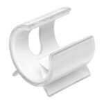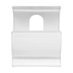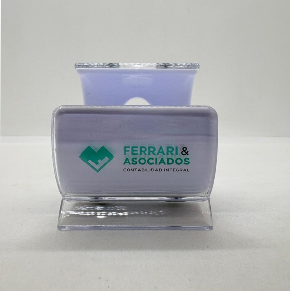 De plástico transparente en el exterior y plástico blanco en el interior. El celular se apoya en el interior del soporte.