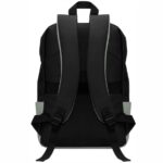 Poliéster 600D. Mochila urbana porta notebook de hasta 15 pulgadas. Bolsillo frontal con cierre horizontal y dos bolsillos laterales. Compartimento principal con bolsillo acolchado para proteger la notebook. Correas ajustables y espalda acolchada. Tiradores de cierres plásticos.