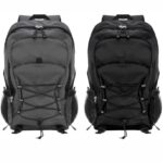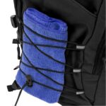 Algodón y Poliéster. Múltiples espacios para transportar objetos. Compartimento principal con bolsillo elastizado. Bolsillo frontal con cierre, cordón elástico cruzado ajustable y dos bolsillos de red laterales y cintas de amarre. Detalles reflectivos. Cierres metálicos con tiradores de goma. Correas regulables y espalda acolchadas.