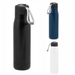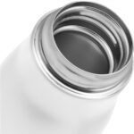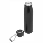 Doble pared, sellada al vacío. Interior de acero 304 y exterior de acero 201. Tapa plástica PP y anillo de silicona. Posee además tira de color gris de 12 cm de largo. Mantiene hasta 12 hs la temperatura de las bebidas calientes y 24 hs de las bebidas frías.