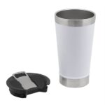De doble pared, sellado al vacío. Interior en acero 304 y exterior en acero 201. Tapa plástica con boca ancha a presión con anillo de silicona. incluye abridor de botellas en acero inoxidable 430. Pintura exterior con acabado mate. Mantiene hasta 4 hs la temperatura de las bebidas calientes y 2 hs de las bebidas frías.