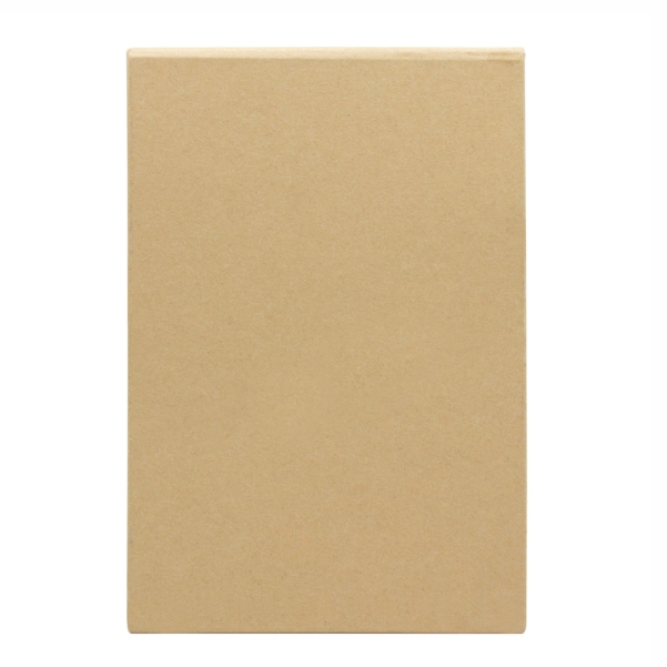 Libreta anotador de  cartón kraft y papel.. El kit contiene: un bloc de 70 hojas rayadas o de 70g  impresos con fecha y día de la semana, bolígrafo retráctil tinta negra con cuerpo de cartón, pulsador, clip y puntera en plástico color negro, y 5 blocs de 25 tiras plásticas autoadhesivas en colores azul, verde, amarillo, naranja y rosa.