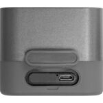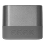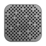 Plástico, en la parte inferior goma antideslizante. Botones de Power: on/off, botón de avance y retroceso que presionándolo durante unos segundos aumenta o disminuye el volumen y presionando solo una vez avanza o retrocede hacia otra canción, botón de play/pausa, luz led indicadora de encendido y entrada USB.