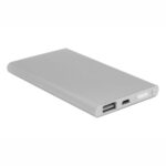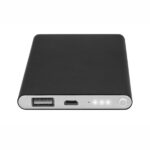 Metálico. Cuerpo de Color. Contiene dos entradas: una USB y otra mini USB. Botón de encendido y luces led indicadora de carga. Con certificación de calidad.
