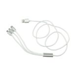 Con entrada USB y diferentes adaptadores: Iphone, Type C y Android. Viene dentro de una bolsa plásticas con cierre ziploc. Aluminio y Nylon. Carga rápida de 2,1 a.