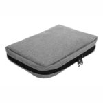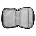Cuenta con dos bolsillos de red con cierre. 4 elásticos que permiten enrollar y guardar los cables, 1 elástico porta bolígrafo y 2 elásticos amplios. Poliéster.
