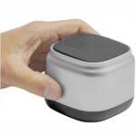 En plástico ABS con pintura al óleo metalizada y metal.  Posee  base  antideslizante con botonera de silicona  y en la parte superior malla metálica negra. Micrófono incorporado. Permite recibir llamadas. Cable de carga y conexión USB tipo C color negro.