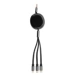 Retráctil con longitud de hasta 115 cm. 3 en 1. Posee tres conectores (Lightning, USB-C y USB standard). En material plástico ABS, TPE y aleación de aluminio.