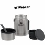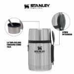 Con tapa aislada que funciona como taza y cubierto integrado.
