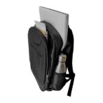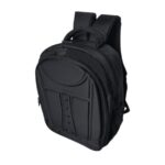 Porta Notebook. Exterior 1680D Poliéster Interior 210T poliéster. Frente de material termoformado. Presenta dos compartimiento, el primero con un cierre simple con bolsillos porta objetos en su interior, el segundo y principal, con cierre doble que contiene sobre el sector de la espalda el bolsillo porta notebook con sujetador con velcro. Interior forrado y acolchado. Posee dos bolsillos laterales en ripstop. Manija acolchada. Correas acolchadas ajustables. Soporte de espalda anatómico acolchado y reforzado. Correa para el carry on.