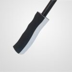 De apertura manual en tela Polyester 190T, con mango soft anatómico con franja del color de la tela. Vara principal de metal y varillas metálicas dobles, puntera metálica.