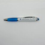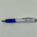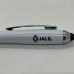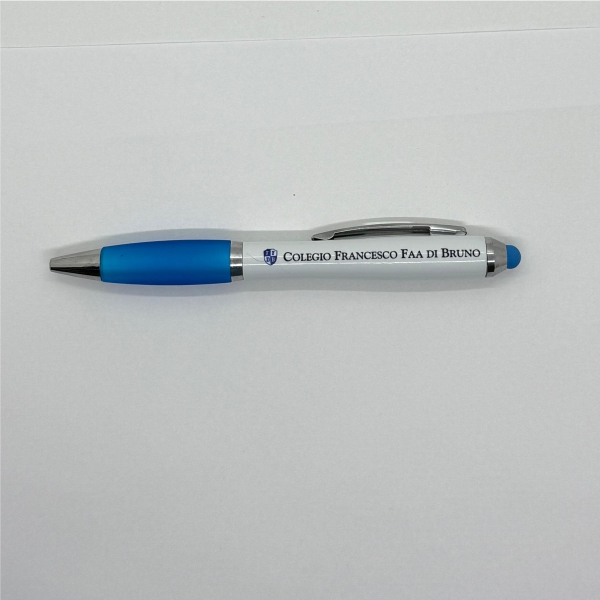 Con cuerpo plástico blanco, grip antideslizante de silicona de color y punta touch de color. Clip metálico