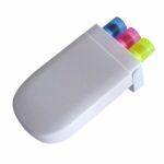 Set de plástico , con 3 resaltadores de gel en estuche con cierre a presión.
