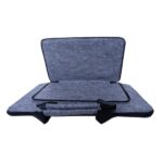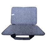 Fabricado con fieltro ecológico. Al frente posee un bolsillo con cierre doble de 31cm de ancho por 20 cm de alto. El maletin tiene cierre doble y manijas de cordura reforzadas con fieltro.