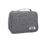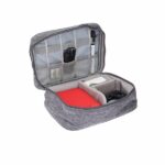 Manija exterior y cierre doble. Paredes acolchadas. Exterior en tela impermeable. Interior forrado con sujeciones para los elementos y tres cintas acolchadas con velcro para asegurar las piezas.