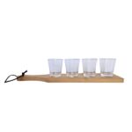Compuesto por una base de bamboo y 4 shots de vidrio.