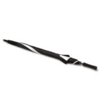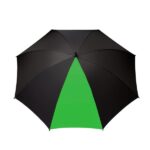 Es ultraliviano, de 8 paneles. Elaborado en fibra de vidrio con sistema WIND PROOF para evitar que fuertes vientos lo rompan. 7 gajos negros y 1 en color. Material: Pongee 190T.