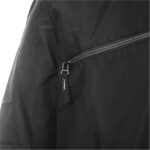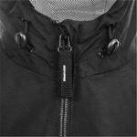 Fabricada en Taslan con milky coating, es una tela con recubrimiento impermeable y protección UV. El tejido interior es una malla de polyester que permite la ventilación en la prenda. La campera esta confeccionada en un corte clásico. La misma cuenta con tres bolsillos con cierre, dos laterales inferiores y uno lateral derecho superior. Cuenta con un bolsillo de seguridad en el interior de la prenda. En el extremo superior del cierre, posee una solapa cobertora. Puños con regulación por velcro. Regulación interna en ruedo, por cordón elástico y tanca. Capucha con 2 puntos de ajuste.