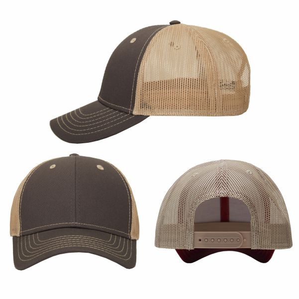 El dorso del gorro cuenta con diseño de tela de red de color kaki y ajuste con broche.