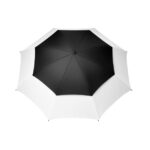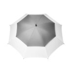 De doble capa de alta resistencia al viento, impermeabilidad y calidad. Posee un robusto marco de 8 varillas de apertura y cierre manual, realizado con fibra de vidrio super ligero y diseñado para soportar lluvias y vientos fuertes. Mango de plástico cubierto con una goma con reborde para un agarre cómodo y no deslizante en condiciones de humedad. Permite que el viento atraviese la tela para evitar que se pueda romper.