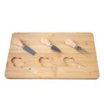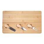 Elaborada en bamboo, con espacio imantado para organizar los utensilios. Incluye cubiertos de acero inoxidable con mango en bamboo: espátula, cuchillo y tenedor. Producto aprobado por el I.N.A.L. para el contacto con alimentos.