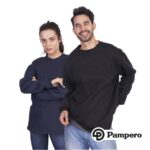 De manga larga de frisa, con cuello redondo y puño en ribb, con costuras en el mismo tono de tela de base. Esta prenda está confeccionada en 70% algodón – 30% poliester.