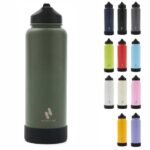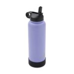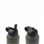 Con doble pared de acero inoxidable 18/8, pintura en polvo y base de silicona antideslizante, mantiene las bebidas frías durante 12 horas y calientes durante 8 horas. Cuenta con 2 tapas negras a rosca, con pico y anillo para facilitar el agarre, y con manija para transportarla. Incluye 2 sorbetes y cepillo limpiador.