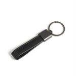 Llavero con tira de PU negra y cuerpo metálico robusto fabricado en aleación de zinc con anillo de hierro. Cuenta con una estructura firme y anillo metálico que permite una sujeción segura de las llaves. TAHG