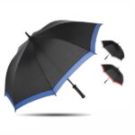Realizado en Pongee 190T con 8 gajos.Estructura realizada en fibra de vidrio con apertura automática. Sistema Windproof con resorte para evitar que fuertes vientos lo dañen. Incluye funda.